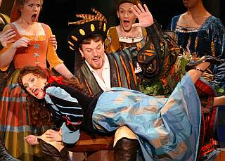 Here’s a publicity photo from what looks like a recent production of Kiss Me Kate. Petruchio, that old dog, is doing what he does best: