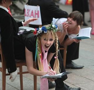 Do you remember the Ukrainian “spank-in” feminist protest last November, that I described here? It was a little bit hard, what with language barriers and clueless media accounts, to figure out exactly what was going on, even though the pictures were abundant.