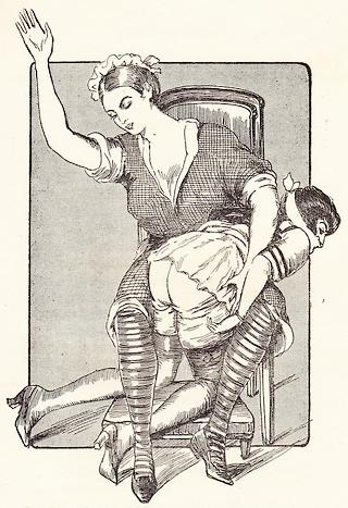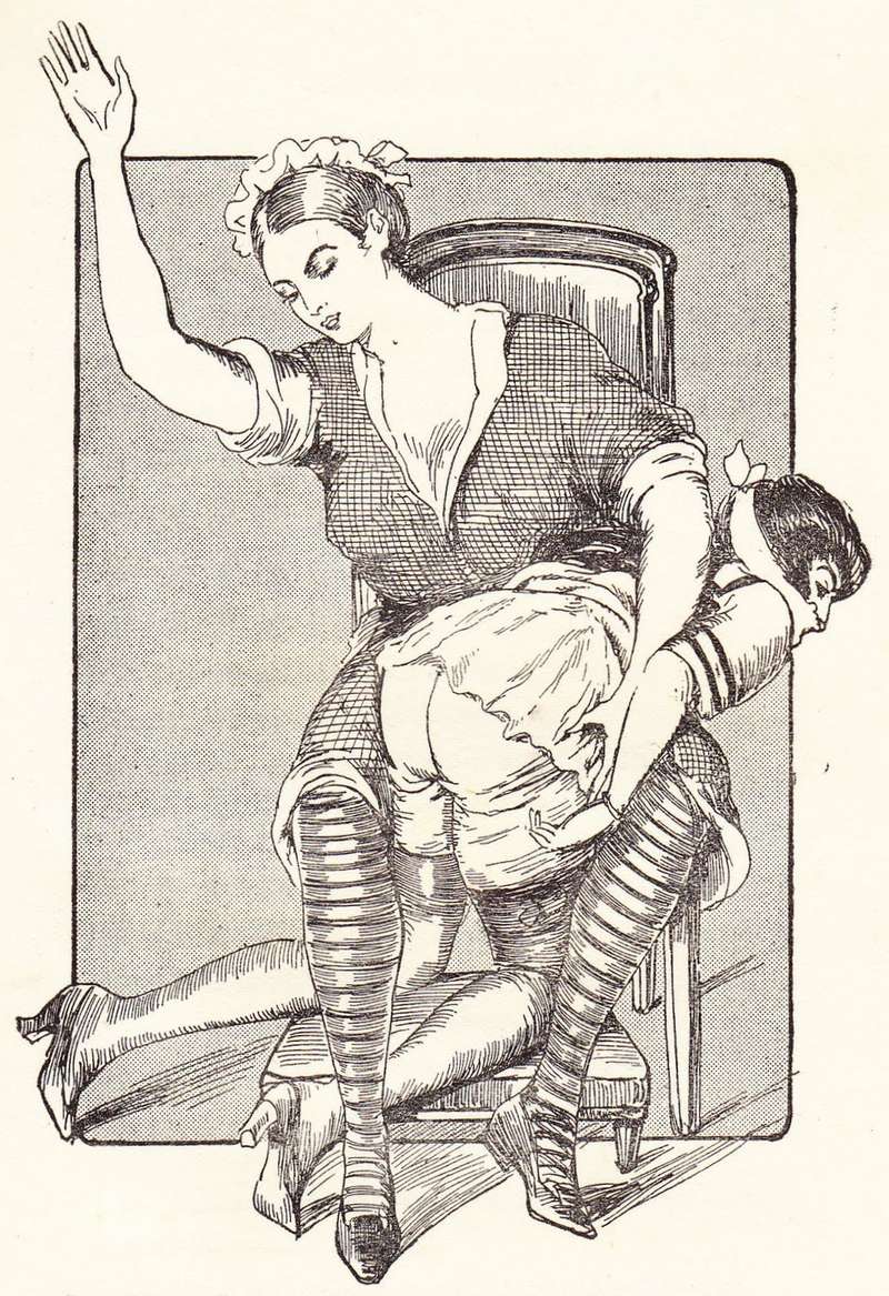This surprisingly modern-looking gagged spanking illustration is actually by Georges Töpfer, illustrating a vintage French erotic book called Visites fantastiques au pays du fouet by Aimé Van Rod:
