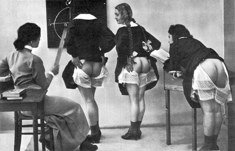 The pictures of this vintage schoolroom punishment scene were all over the vintage and spanking corners of Usenet when I first started paying attention so many years ago. Of course, in the web era, they’re all over the web. Before UseNet, they were endlessly republished in spanking magazines (for example, one of them is in Spank Hard #2 from 1984) and sometimes in more mainstream porn magazines. Micheal Masterson, the founder and proprietor of the Real Spankings family of porn sites, is on record that one of these pictures was the first spanking photo he ever saw (he was 11, and the picture was in Penthouse).