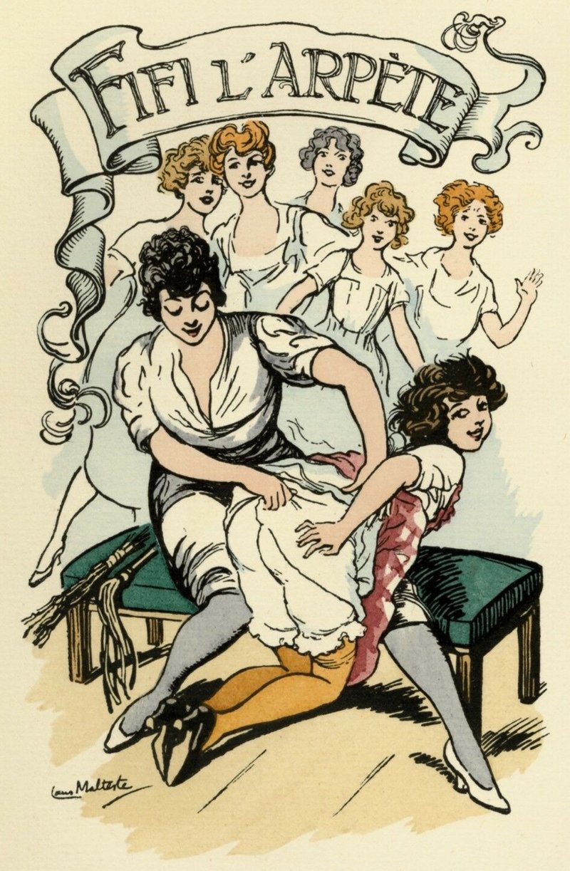 This artwork by Louis Malteste is the frontispiece from Fifi l’Arpète (Collection des Orties Blanches, Paris, 1922):