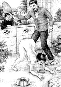 Here’s an odd little image that appears to combine a good hard paddling with that odd Japanese puppy-girl fetish: