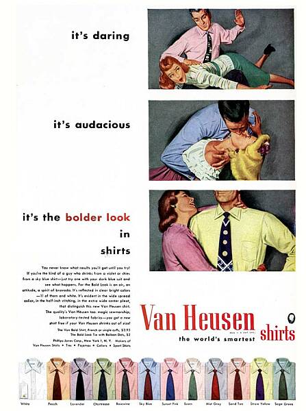 Check out the awesome ad copy. “It’s daring. It’s audacious. It’s the bolder look in shirts. You never know what results you’ll get until you try!”