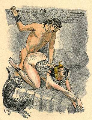 What’s up with that preverse little monkey looking on like some twisted furry Chac Mool?!