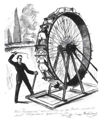 Here’s the way to spank the girls in this new industrial age: tie them to a wheel and whack them every time they come around. Efficiency! Efficiency! It’s the only way to fulfill the five year spanking plan!