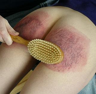 i like to be spanked with a hairbrush,otk,bare. start using the hand then the brush. as my bottom turns pink i start to cry and when red i am begging she stops. it always stops before bruising