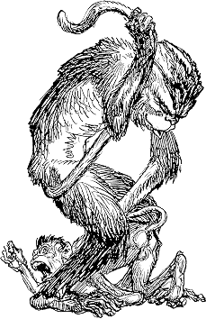 But, a sick person that I am, I’m immediately reminded that in “Jungle Book” Mowgli got spanked for playing with monkeys. Not with a tail, though.
