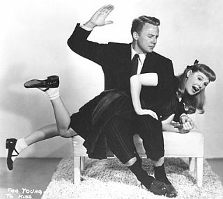 It’s been a while since I posted a good movie spanking. This one is a promotional still for the movie Too Young To Kiss and features actress June Allyson.