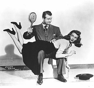 I could swear I’d blogged this picture before, but I can’t find it, so perhaps not. It’s a still from The Fuller Brush Man featuring Red Skelton spanking Janet Blair: