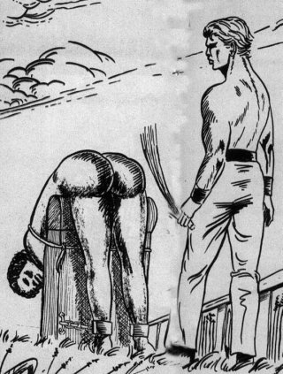 Now, whether you like it or not, the fantasy of spanking in non-consensual situations is a huge part of the “adult erotic spanking” universe, and artwork depicting those situations is a staple of this blog. Note I said “fantasy”. Girls spirited off rolled in carpets to Turkish harems ruled by eunuchs with gleaming bamboo canes, shopgirls abducted in New York and spirited away by spaceship to a life of abject slavery on Gor, poor shoplifting women birched daily in cold stone Victorian prisons, young female scholars getting caned repeatedly for silly schoolgirl offenses like conjugating french verbs badly, snotty wives being punished unexpectedly for running up their credit cards, and, yes, chattel slave women in the American south being punished by their “owners”, all these and a thousand more are standard erotic spanking fantasy tropes. In most of these situations the spanking is not consensual, but it’s somebody’s erotic fantasy, so that’s within the “erotic” purview of this blog and it’s OK with me.