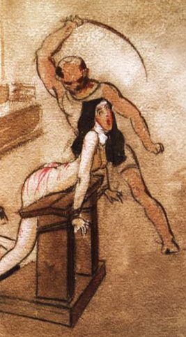 Around 1700 there was a German (?) monk who way called the “Frauenpeitscher” (the man who whipped women). He was known to shrive pentitent ladies by caning them. A long time ago a saw his picture and I found it very very interesting… I do not remember his name nor the place I’ve seen the picture.