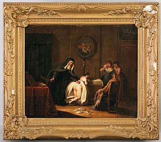 In a comment, Arkady linked to the following oil painting from a French-language auction catalog. Since it wasn’t on topic for the comment, but it is a most excellent bit of nun spanking art, I decided to pull it up into a post of its own.