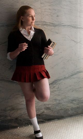 Laci Laine makes a plausible “schoolgirl”. A naughty one, of course; here she is, loitering and smoking in the hallways during class period.