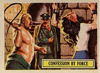 This art is was painted by Norman Saunders in the 1960s for the Battle cards series, and was withdrawn from publication after unwelcome attention in the British House of Commons: