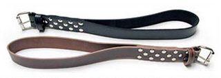 A clever twist on the classic punishment belt, this slapper has a traditional belt buckle and loop, and 14 steel rivets holding a looped strap together as a handle. The strap makes a fear-inducing snap, when grabbed at both ends and quickly straightened. The strap is 1½” wide, and 17″ long in a loop.