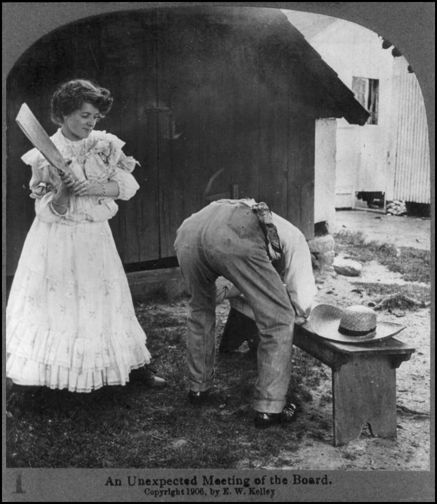 I believe this is what bratting looked like in 1906. On the next cabinet card (if only we had it!) she’s probably over his knee on the bench, nothing visible but her bare bottom and a mound of skirts piled up over her head and shoulders and arms: