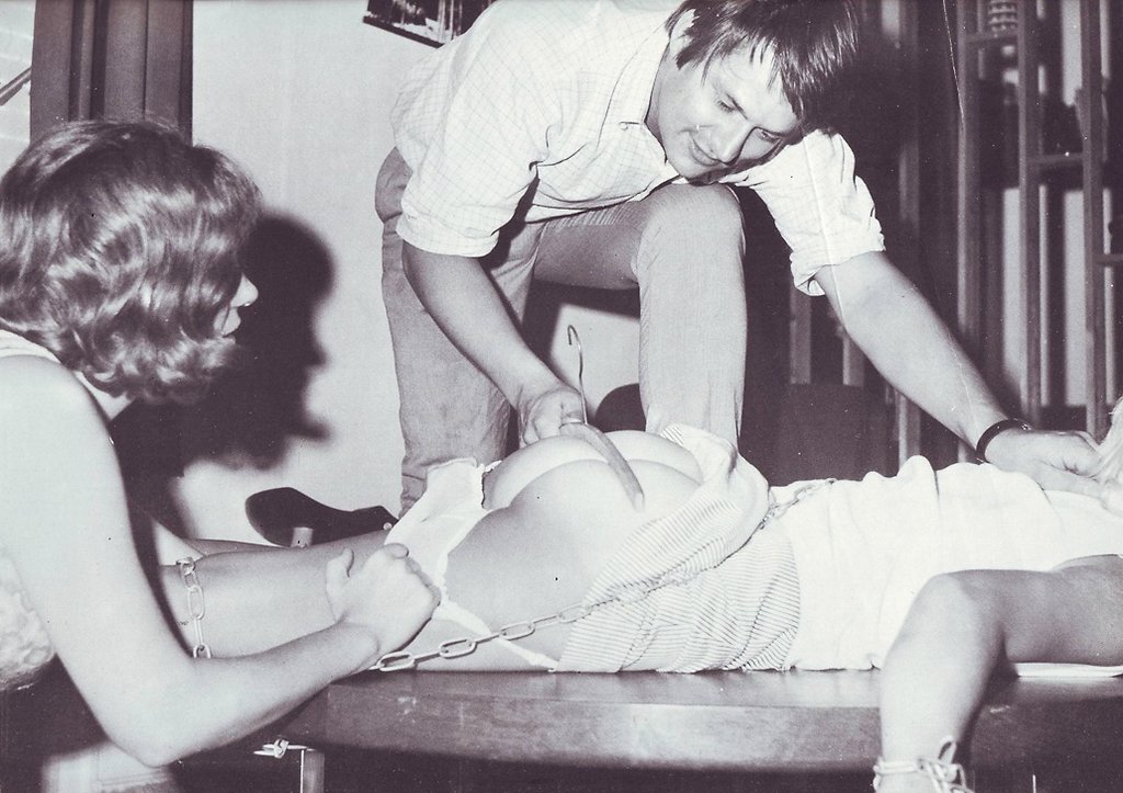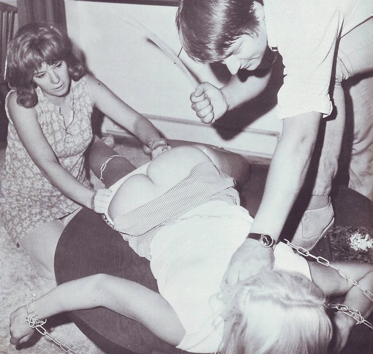 Normally when a girl needs a spanking with a wooden coat hanger, she knows it — and doesn’t need to be chained down. But these images come, I think, from one of those 1970s “roughie” magazines where the storylines are fairly violent and scary.