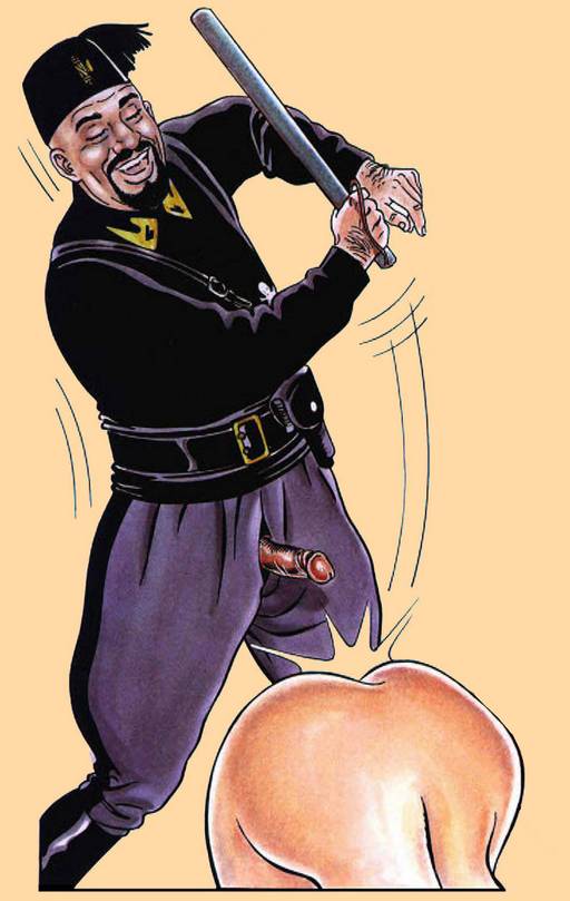 asian cop beating a woman\'s ass very happily and sporting a big erection