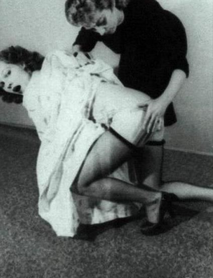 I could wish for a better quality photo, but the surprised look on the spankee’s face makes even the grainy version too good to pass by: