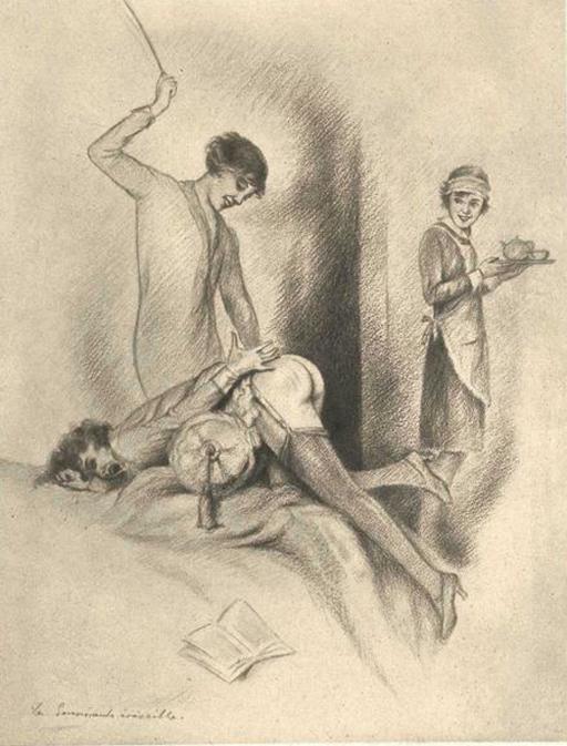 I noticed madam still has on her lingerie and shoes I assume her gown was pulled over her hips which puzzles me is that a night shirt Perhaps a curfew violation or some other late night activities discovered to earn her just desert Love these drawings thanks for letting me see into time now past of grand houses and the cancer of respectable behavior for the so called upper classes
