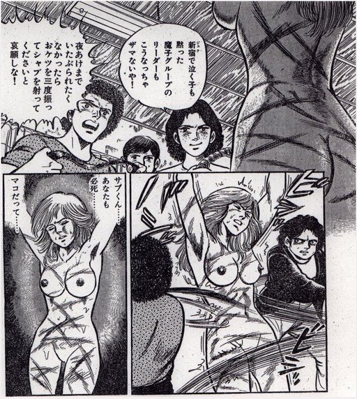 Some pretty serious whipping going on in this set of panels from an unknown manga. A pity I can’t read the speech bubbles: