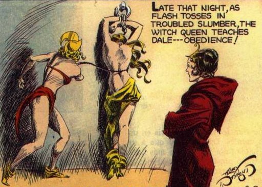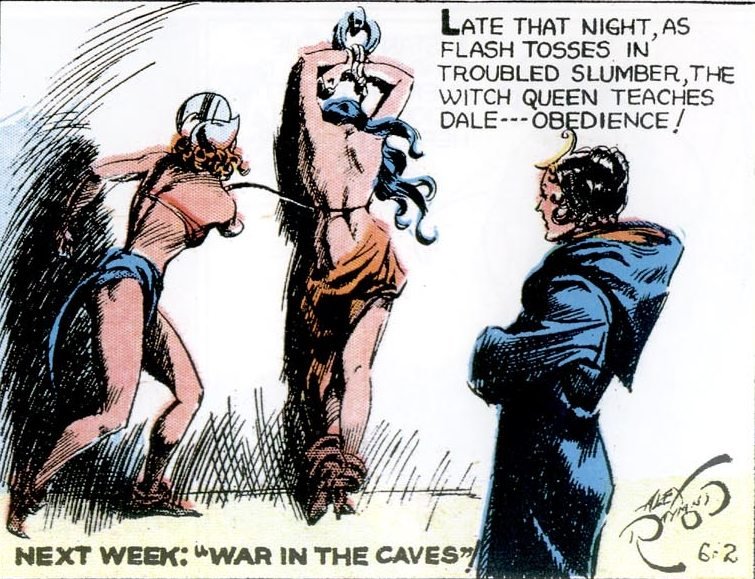 This bit of whipping art from the Witch Queen of Mongo sequence in the Flash Gordon comic strip is hard not to like. Usually you see it with different, more muted colors (click this image for a larger image with the other colors) but I like these better: