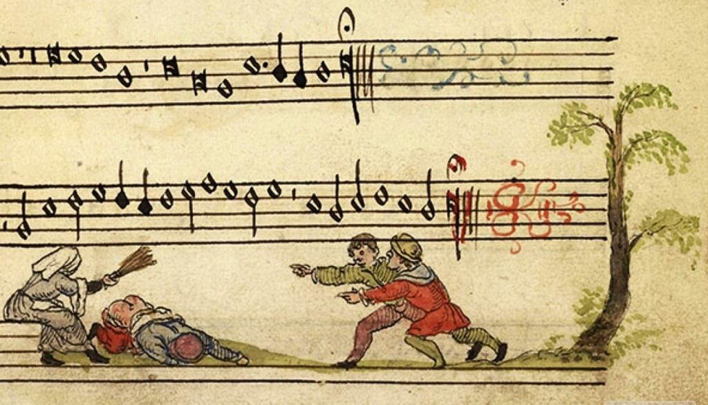 Source is this tweet by Johan Oosterman, a professor of medieval and early modern literature at Radboud University in The Netherlands. His caption: “Times changed: corporal punishment was fun for the bystanders in sixteenth century Flanders. CambraiBM125-128”