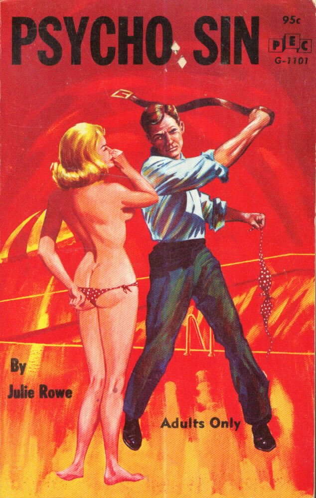 Artwork is from the cover of an old pulp novel called Psycho Sin (cover art by Doug Weaver).