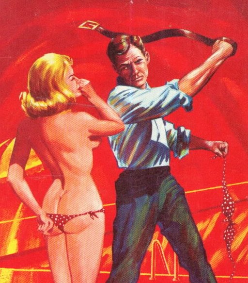 I can understand that maybe this man needs to remonstrate with his wife for wearing that itsy bitsy teeny weenie sexy polka dot bikini… to teach Sunday school. A wee belt spanking might indeed be in order. It might even be appropriate to place a few admonitory welts on her magnificently-displayed breasts. But using the buckle end? That’s going too far, says me:
