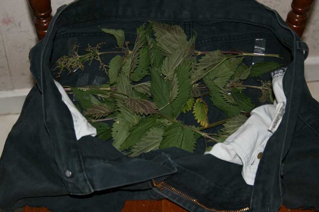 I used a pair of old shorts (actually a pair of old jeans with the legs cut off) which are very tight and filled them with nettles so that all of my buttocks would be covered, according to the orders I had been given. I fastened the nettles by adhesive tape so they would stay in place. All these preparations for what was to come surely made me very excited and I was watching the dark green nettles in awe and with anticipation.
