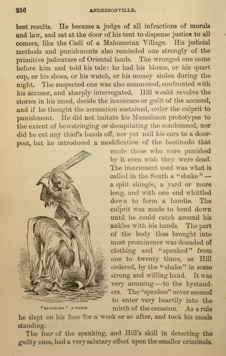 This Civil War era account of M/m disciplinary spankings comes (via the Punished tumblr) from an old book about life in a Confederate military prison camp where the prisoners were left to administer justice among themselves: