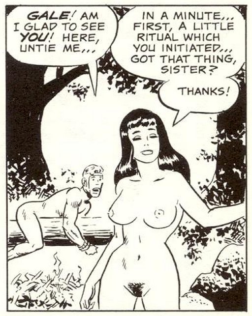 A while back ErosBlog posted several panels from a 1970s “Flash Gordon” parody sex comic drawn by Wallace Wood. In the comic, “Flesh Fucker” finds himself at the mercy of a feminist Amazon. He’d twice previously “rescued” this woman, and then casually fucked her (without asking) as if it were the obvious prerogative of the male hero. Well, now the tables have turned and she is ready for her revenge: