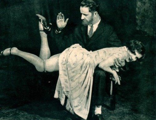 This vintage over-the-knee spanking photograph is for you girls whose preference is for a stern man with a beard: