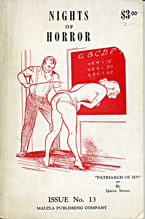 Art is from the cover of Nights of Horror 13, from Malcla Publishing. The artist is Joe Shuster, the co-creator of Superman; his Malcla fetish work came about late in his career when he’d fallen on hard times.