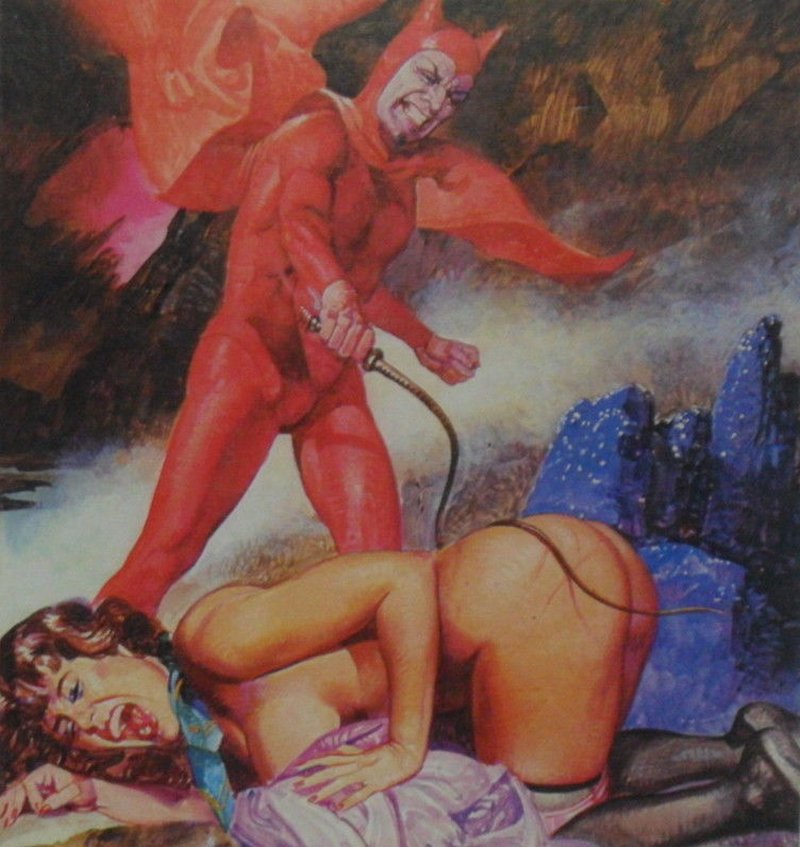 This devilish whipping is from the cover of some sort of pulp publication, that’s all I can say: