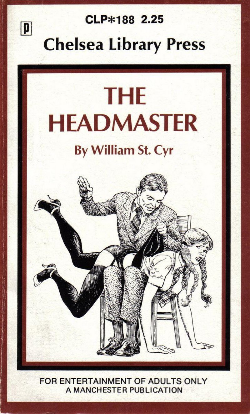 The spanking novel The Headmaster, by William St. Cyr, is the classic tale of a boarding school where the girls sometimes get left too long, until they are all grown up and sexually frustrated, and the headmaster’s capacity to resist temptation has been utterly depleted:
