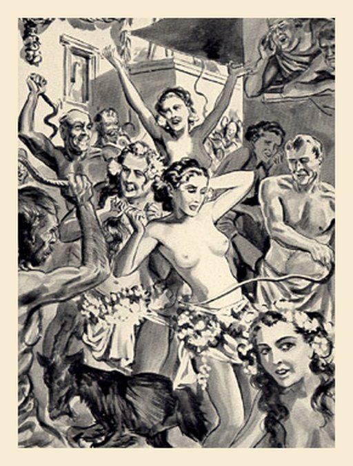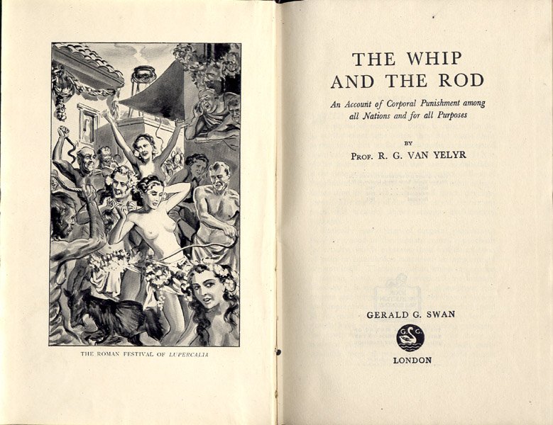 This Lupercalian scene is from the frontispiece of The Whip And The Rod, by the probably spurious Professor R.G. Van Yelyr (said to be the pen name of George Ryley Scott).