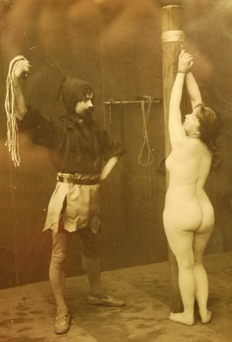 From Bondage Blog, some lighthearted vintage fun with rope flogger: