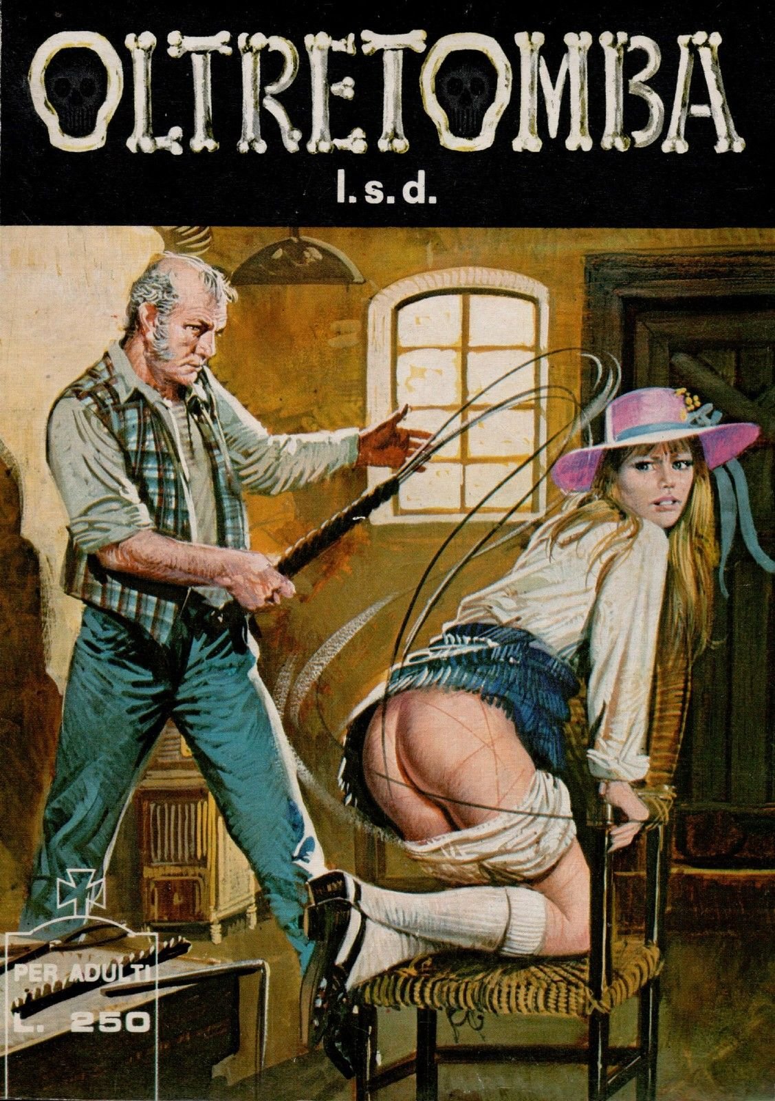 I don’t know how this whipping is going to go; there doesn’t quite seem to be room indoors for a whip of such length to be swung properly. But I feel it’s almost certain that Our Heroine is English, perhaps on holidays, and she shares our conviction that nothing can go too badly wrong for her, for so long as she is allowed to retain her excellent summer hat: