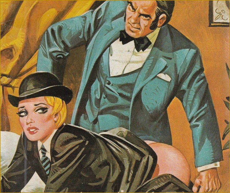 I am not sufficiently certain that my knowledge of the fashions worn by ladies in decades past is so solid that I’m correct that the woman here having her bottom bared for a spanking is wearing riding attire, but I believe it to be so, and if I’m wrong, I’m sure somebody from the internet will come along to correct me: