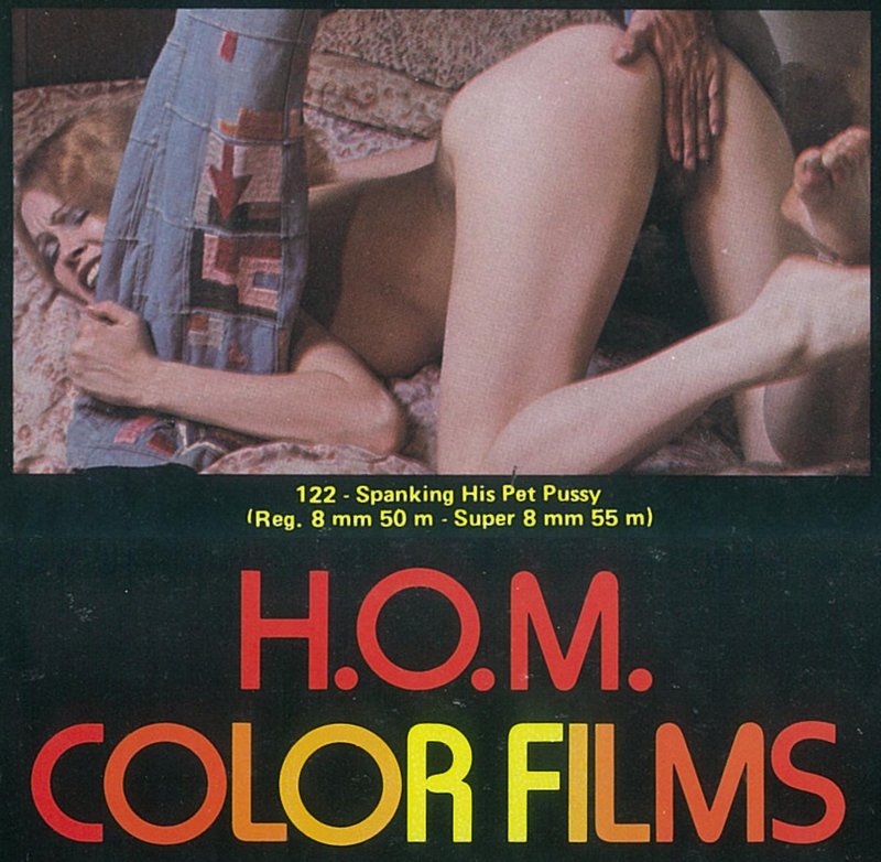House Of Milan (HOM Inc, aka H.O.M.) is known for a lot of kinky porn from the 1970s and 1980s, but not a lot of spanking material per se. So I was interested to see a number of what appear to be spanking titles in their advertisement for 8mm color loops in the back of a 1983 bondage magazine. Details are sketchy, but some of the titles and advertising stills are promising, such as “Spanking His Pet Pussy”: