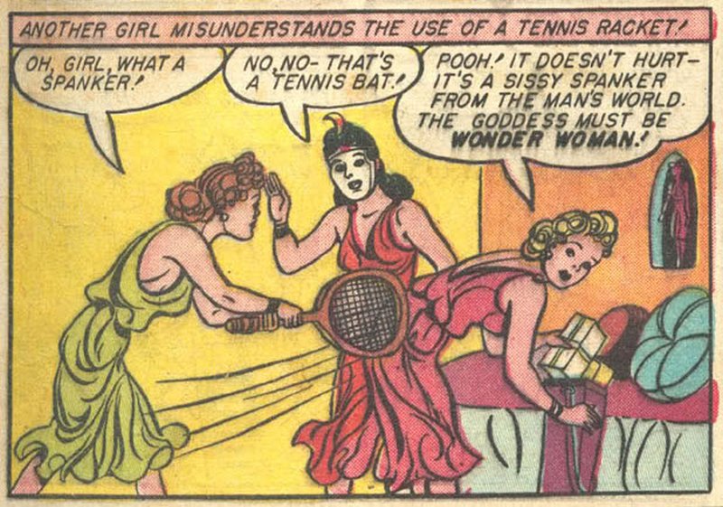 A tennis racket spanking? In Wonder Woman #3? Yes!