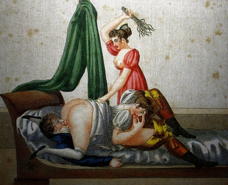 All I can say about this vintage erotic art is that it seems to me the gentleman chose a rather classy brothel at which to seek his refined and sophisticated flagellatory pleasures: