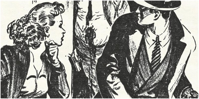 There’s a scene in Speak Softly To The Dead by Dale Bogard, as appearing in the January 1952 issue of Popular Detective. It’s the classic stuff; she slaps him, he threatens her with a spanking, and then she tries to seduce him: