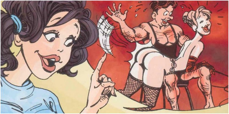 A cartoon character with an active imagination has been watching her neighbors, and what does she think they get up to when the blinds are drawn? Why, spanking, of course!