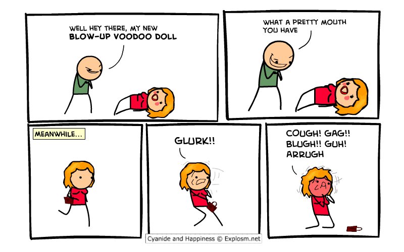 The moment I saw this Cyanide & Happiness webcomic, my mind went to a dreamy place. Just think, if we could get spanking voodoo dolls this effective, how much fun could we have?