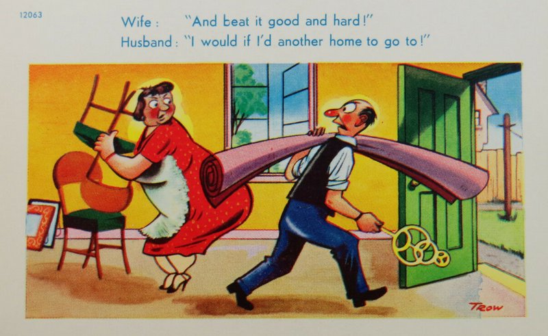 This man knows the higher and better use for that carpet beater in his hand, but he just doesn’t quite have the courage to demonstrate what he knows: