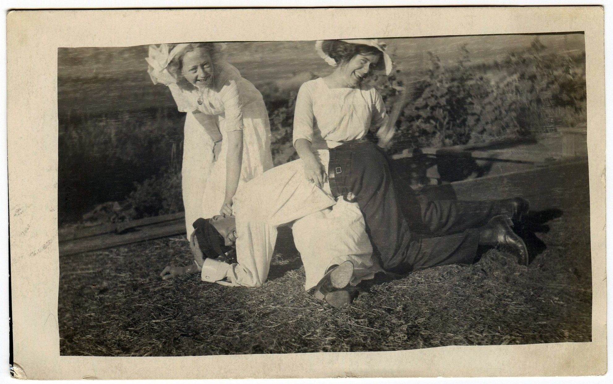 The large number of humorous spanking photos from the old days is indeed rather interesting. It shows that adult spanking was seen as a fun activity. This one looks like it might go back to the 1930s when of course there was no video tape and even 8mm home movie equipment was rare. Without video, still photography was where it was at. I wonder how many spanking photos are being taken by young people today? Perhaps not many, even with a camera in almost every phone.