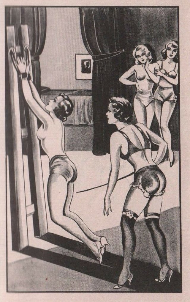 My first impression was, I would have expected the dominant to be more fully clothed to make the stripped down victim feel even more vulnerable.