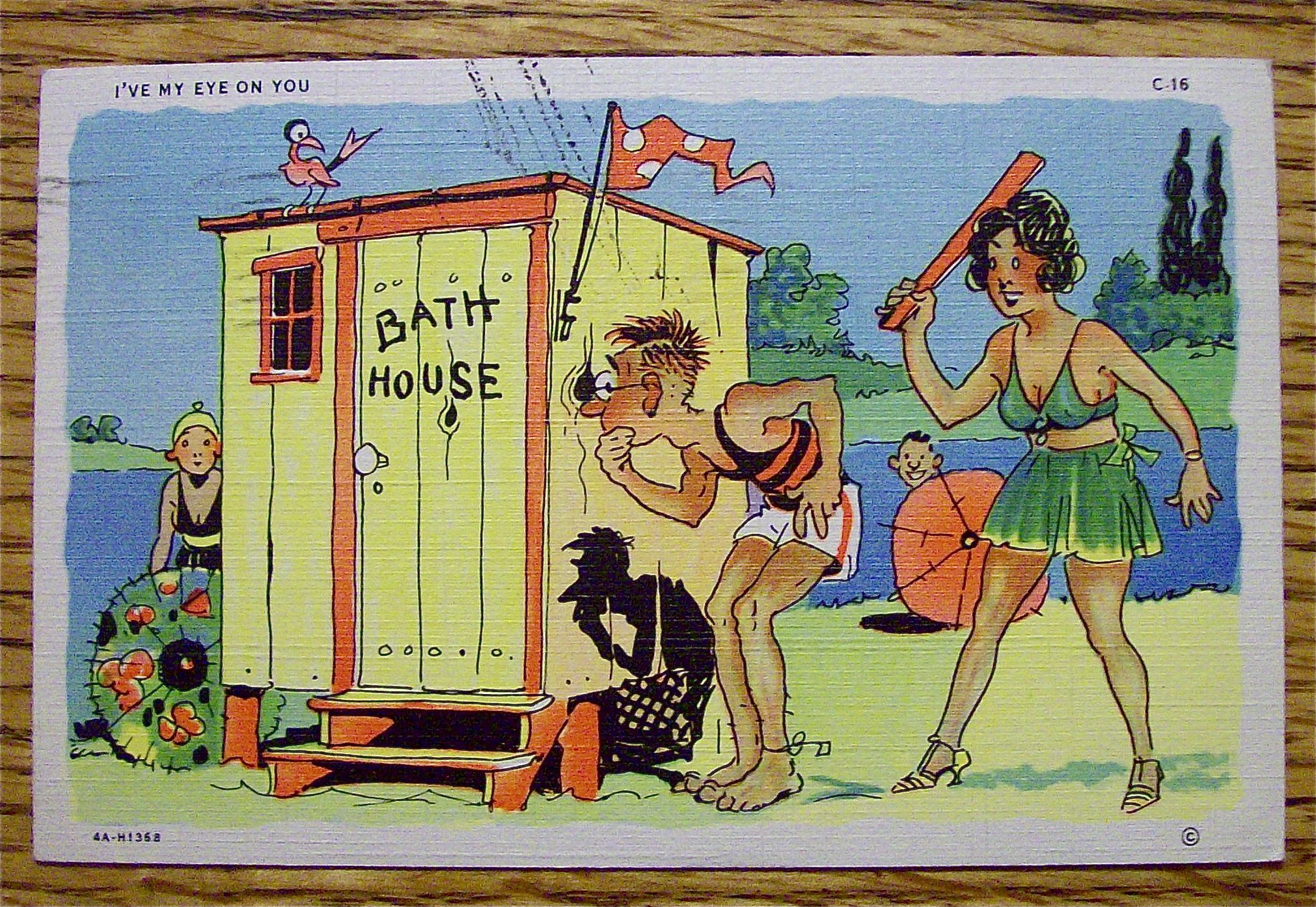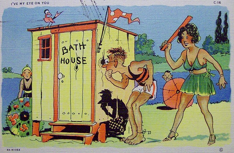I’m not saying we don’t have voyeurs in 2021; we manifestly do, and every so often some sad dude gets arrested for hiding a camera in a locker room. But it’s in the nature of a rare perversion these days, whereas (if we trust the magazine gags and comic postcards) it was common behavior, with a heavy degree of “boys will be boys” social resignation about the phenomenon.